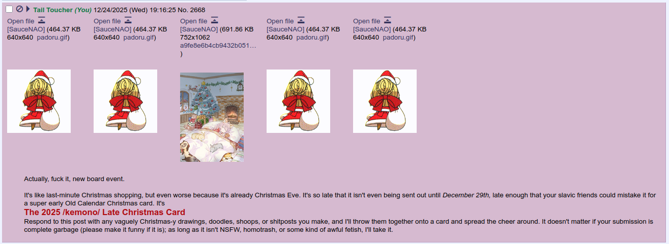 The board owner recommends hiding this thread for the duration of /christmas/.
