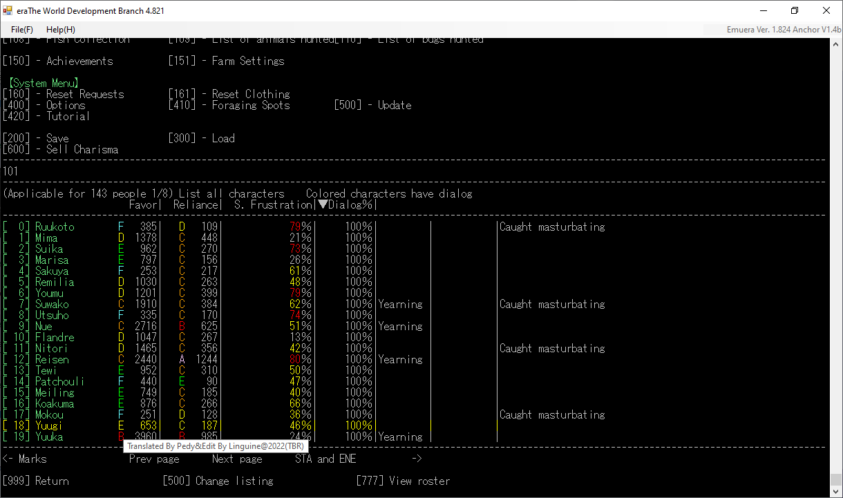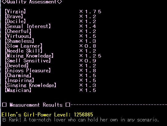 There is a lot of hidden stuff on the eraMegaten's wiki and it is fascinating to me that there are people who care so much about this game: