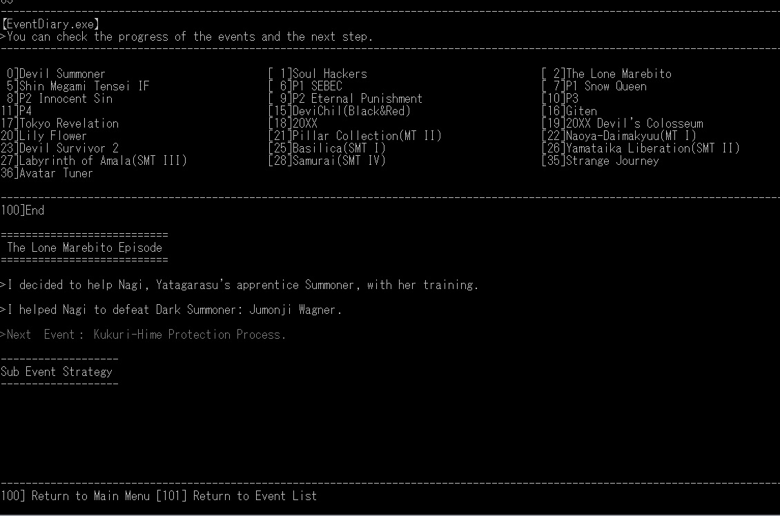 eraMegaten: https://wiki.eragames.rip/zips/eraMegaten-master.zip A vast SMT game with various RPG mechanics and tons of content. Will never have a full translation.