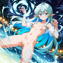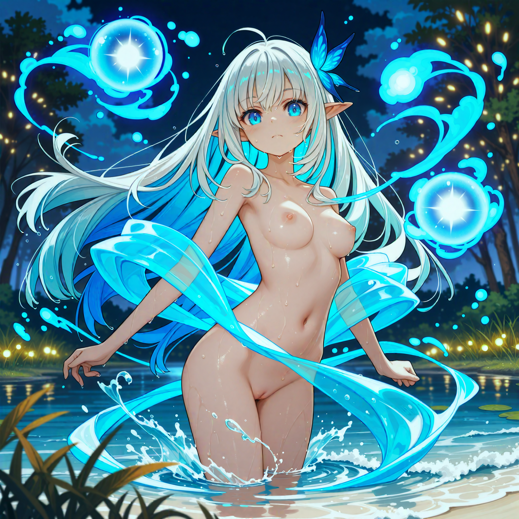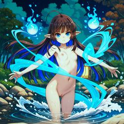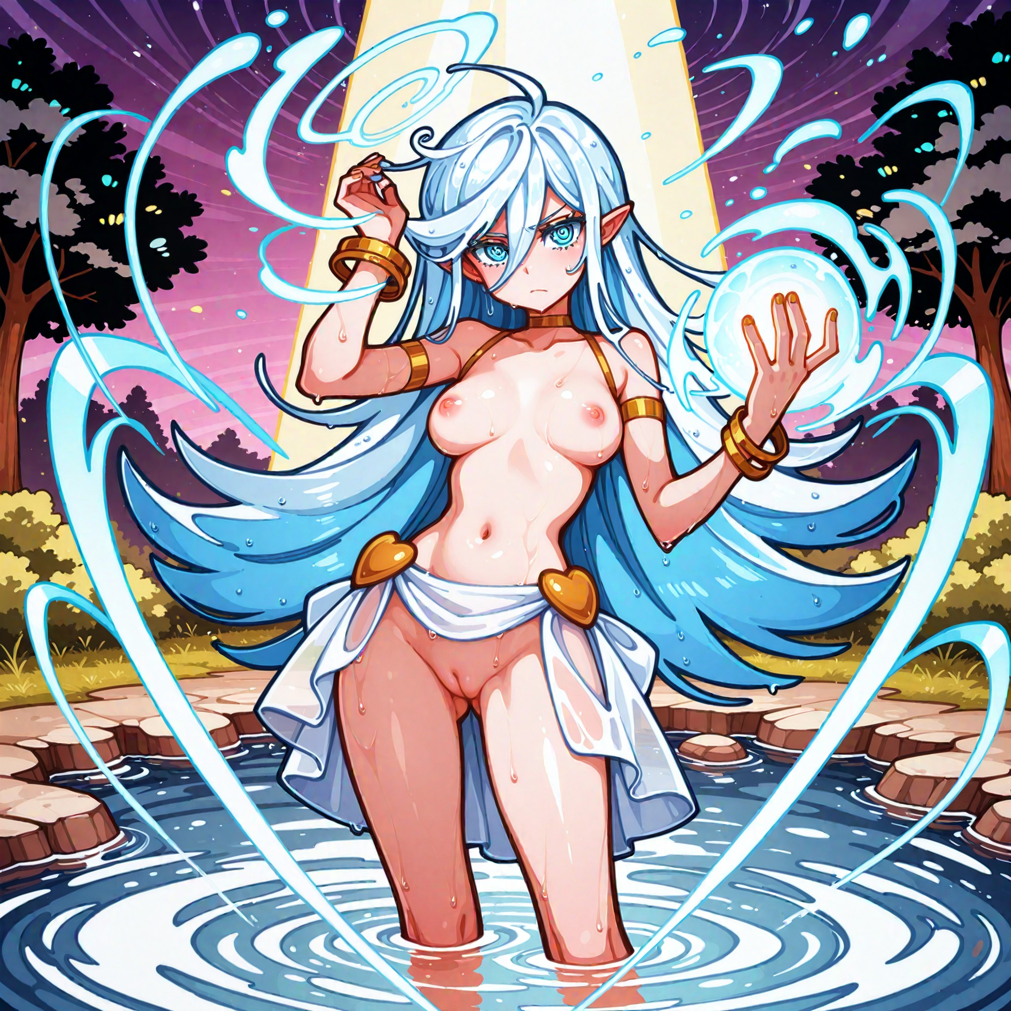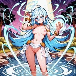 "prompt: score_9, score_8_up, score_7_up, score_6_up, score_5_up, score_4_up, source_anime, rating_explicit, naked catgirl bathing in a river, pussy, innie pussy, flat chest, pink hair"