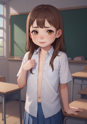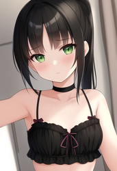 The basics are pretty simple: you put what you want to see in the positive (top) prompt, and you put what you don't want to see in the negative prompt. For example, maybe we'd like our youthful catgirl to have pink hair, a flat(ter) chest, and an innie pussy (no roast beef please). Also, her eyes look a little fucked up, and through a lot of experimentation, I happen to know that adding "slit pupils" to the negative prompt fixes this (I guess the AI isn't sure if a catgirl should have slit pupils or not, and this confusion is what fuckes up the eyes.) Let's try adding some terms to our positive prompt: