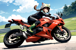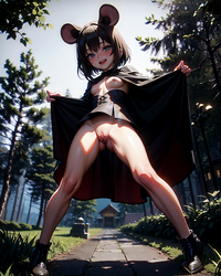 For our next trick, let's add an artist prompt. I've found that alpha91 (a hentai artist, look him up) works great as a prompt, and tends to elevate the quality of anime-style porn by quite a bit. In fact, let's add him as a strong prompt. You can make prompts stronger or weaker (make the AI pay more or less attention to them) by putting them in parenthesis and adding :N, where N is a number. :1 is the default strength, :1.1 is slightly stronger, :0.9 is slightly weaker. Let's add (alpha91:1.2) to our prompt, letting the AI know we'd like to see a strong influence of alpha91's work on this piece. Also, the AI seems to have forgotten her tail, so let's also add "cat tail". We get Image 2, which IMO looks quite nice.