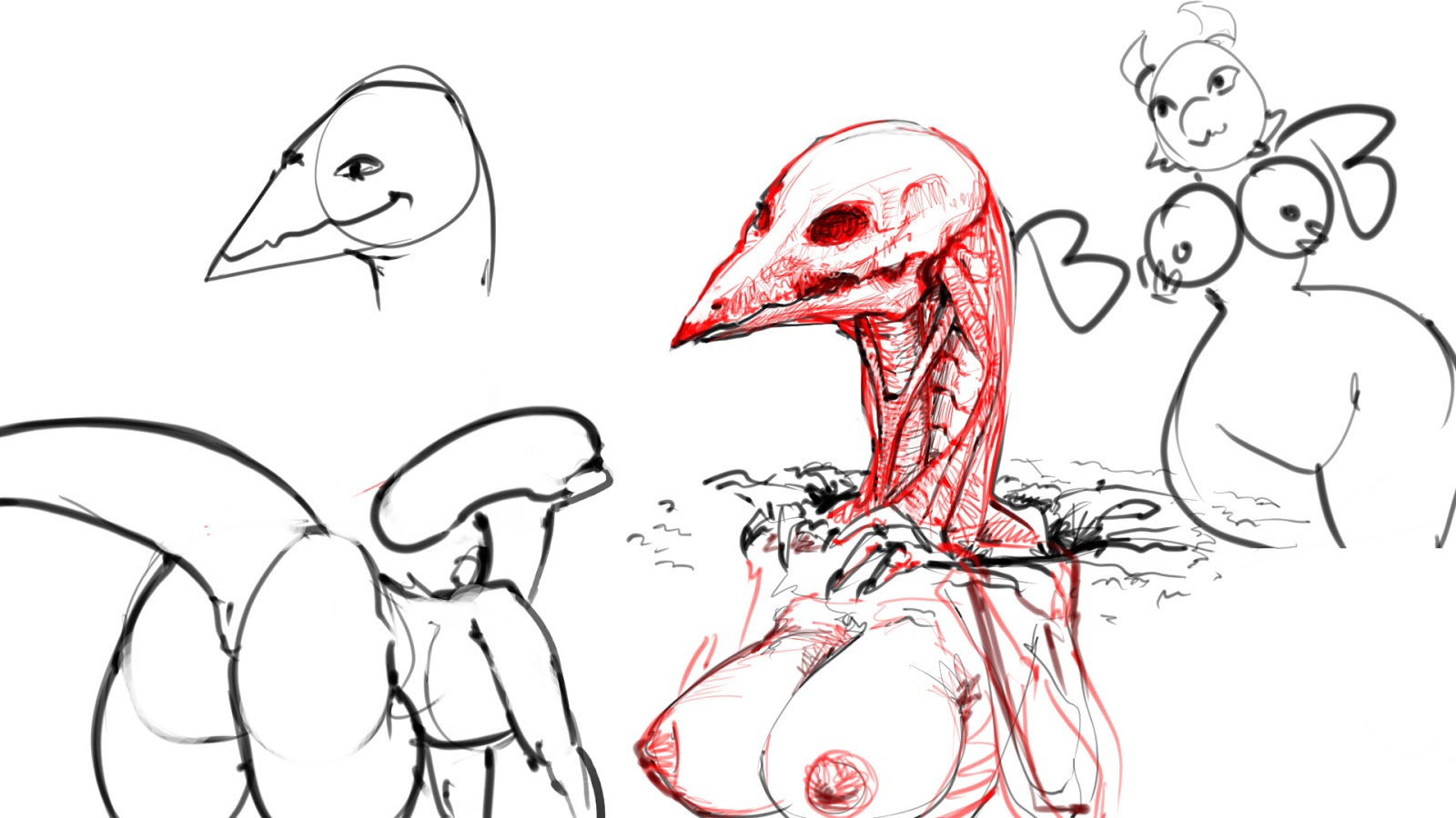 2 tits + arms, the more fleshy the queen, the better. no one wants to hug some hard cold exoskeleton. And 4 tits looks stupid.