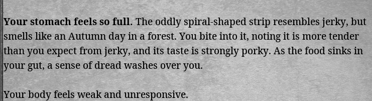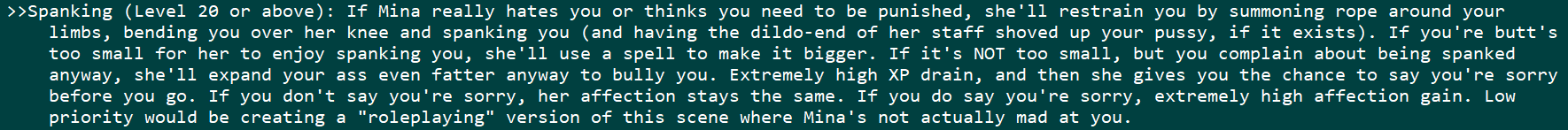 How does she interact with corruption? Would be funny if after sucking enough power of a high corruption player her corruption accidentally hits 100 and she loses her soul because she was too retarded to notice. Maybe for a corruption path if you add one?